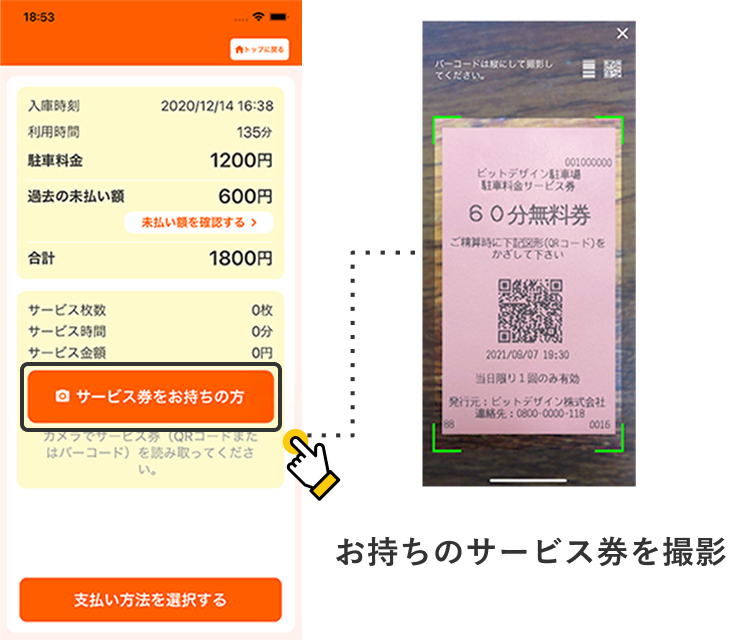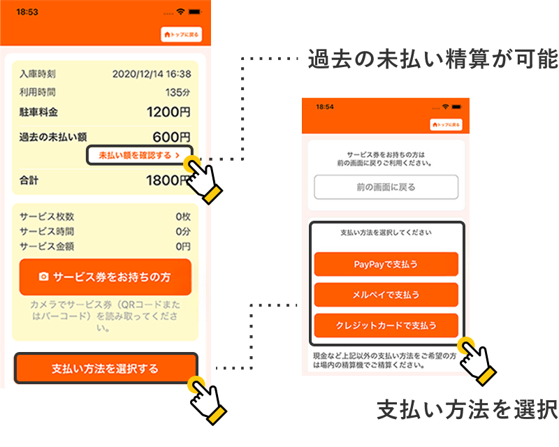 - 過去に支払いの駐車料金がある場合に、検索結果に未精算データが表示されます。