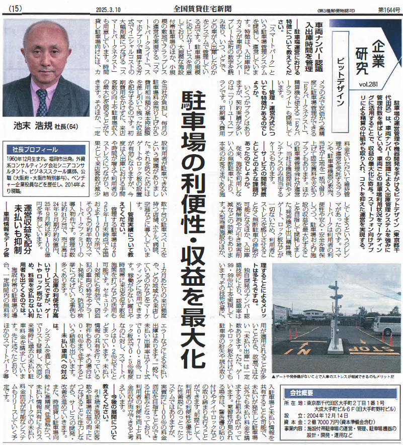 TOP お知らせ 「全国賃貸住宅新聞」に掲載されました 2025.03.13 「全国賃貸住宅新聞」に掲載されました 3月10日(月)発行の「全国賃貸住宅新聞」に「駐車場の利便性・収益を最大化」という見出しで掲載されました。ぜひ、下記記事の詳細をご確認ください。 出典:2025年3月10日(月)「全国賃貸住宅新聞」 前の記事 【お知らせ】ステーションヒル枚方 バイク駐輪場ナシロック解除に関して 次の記事 TBSラジオ「森本毅郎・スタンバイ!」に出演しました お知らせ一覧へ戻る