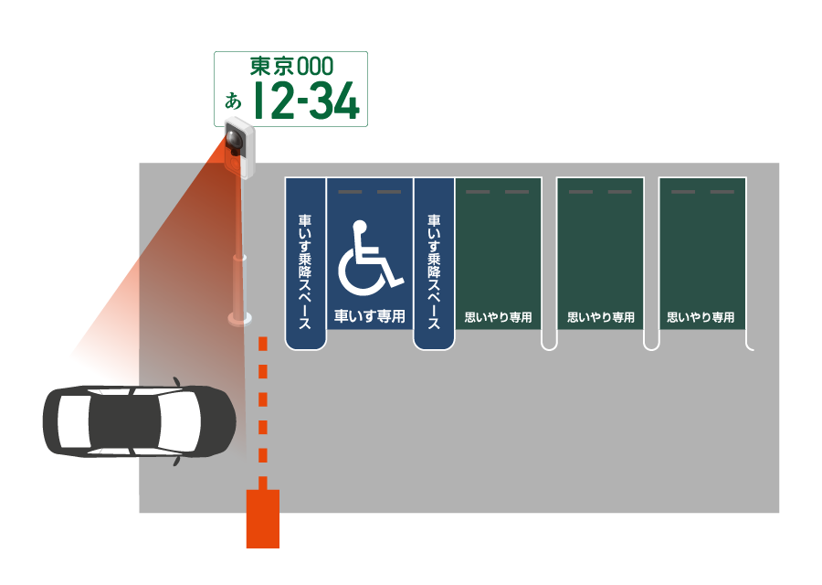 車室単位の障がい者用スペースにおいても、登録済みナンバープレートの認識により、
