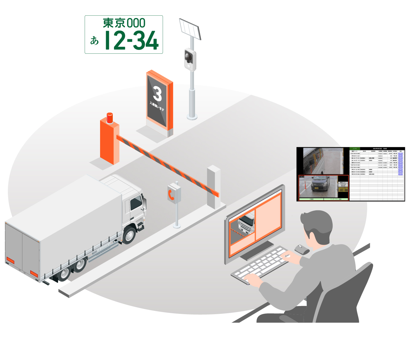 車両ナンバー認識による入退場管理システム。